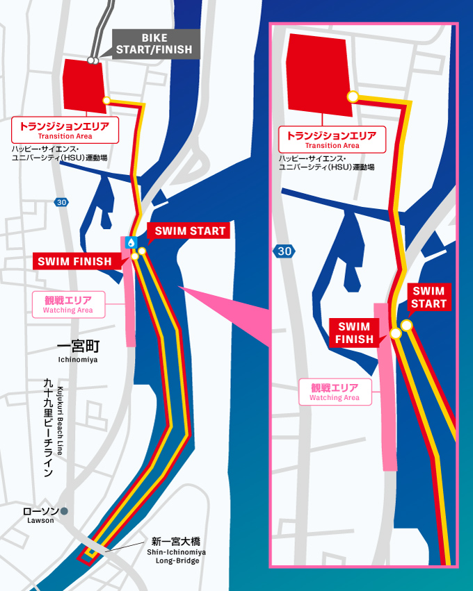 ※荷物預り袋は当日の受付にて、スイムキャップは当日スイム会場にてアンクルバンドと一緒に配布します。
